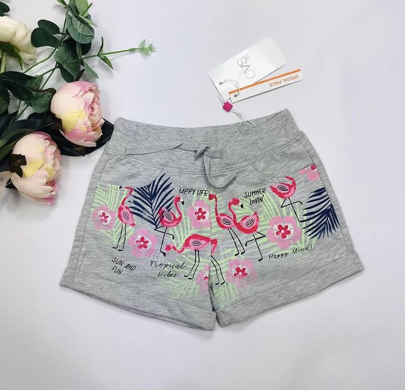 Шортики с фламинго для девочки🍭🌷 OVS 95% cot 🔖 3-4 р. (104) Длж 22.3 Пог 23