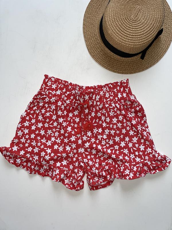 Яскраві шортики, ідеальний варіант для літніх прогулянок Є кишені По бірці на 9 років, але орієнтуйтесь на заміри Пояс 28 см на резинці, добре тягнеться Довжина 28 см
