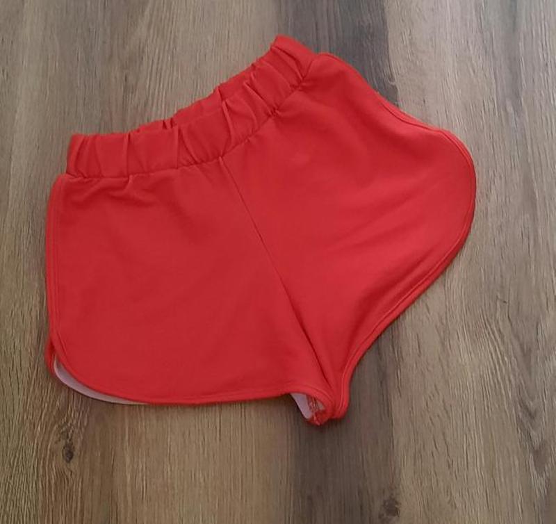 Яркие спортивные шорты. Размер 134-140. Длина по боковому шву до разреза 19см, полная длина 24см Полуобхват талии (резинка в не растянутом состоянии) 24см