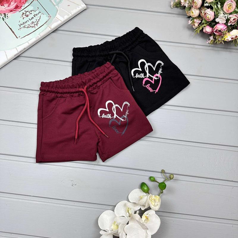 🌸Шорти сердечка. Есть кармашки. В поясе резиночка, красиво тянется и кулиска. Тканина двунитка. Производитель Турция 📐Замеры: 110 см-дл. 24 /бедра 32 116 см-дл. 25/бедра 33 122 см-дл. 26/бедра 34 128 см-дл. 27/бедра 35