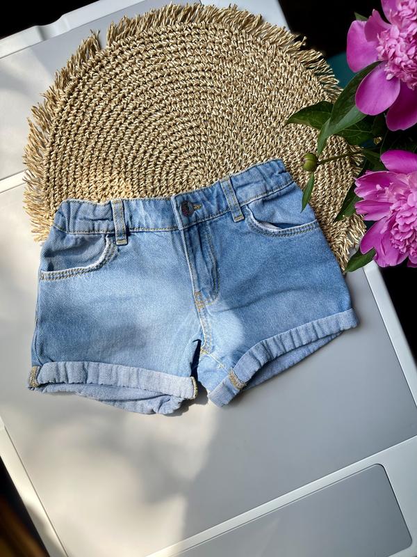Джинсовые шорты для девочки. Стильные потертости на карманах. Можно регулировать пояс благодаря резиночке-регулятор, которая отрегулирует объем. Есть один нюанс, маленькое пятно на кармашке, смотрите последнее фото. В очень хорошем состоянии. ✅Размер: 5-6 лет / 116 см. 🧺 Все вещи постираны и выглажены паром. ❤️Пишите, отвечу на все ваши вопросы. С радостью сделаю дополнительные замеры и фотографии.