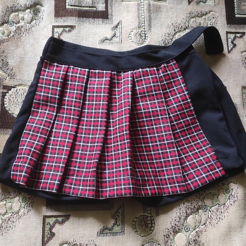 Крутяцкая юбка-шорты, сбоку на завязке. Длина по шортам спереди 25, по юбочке 27, в поясе ширина 28, вставленная резинка, хорошо тянется. Ширина попе 35 см.