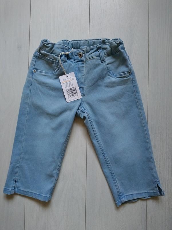 Джинсовые капри новые сток Эластичные Пояс стягивается резинкой на пуговицах Материал 73% коттон, 25% полиэстр и 2% эластан Размер 134 Длина 50 см Крок 31 ПОП 30 см и тянется до 36 и стягивается ПОБ 38 см и тянется