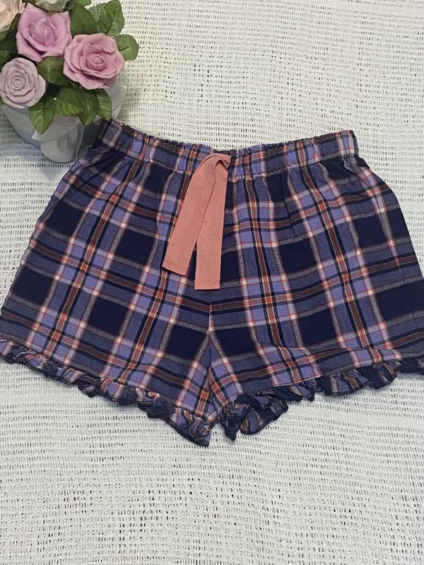 Красивые, из очень качественной натуральной ткани (algodon - в переводе с испанского - хлопок) шорты на девочку. На талии - широкая резинка. Объем талии дополнительно регулируется затяжками из переда. Тканина не тягнеться. Замеры: пот 32, потянется до 42, поб 44, длина 29