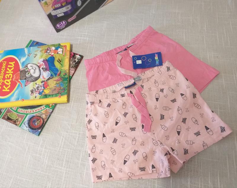Крутые шорты на девочку 98/104р. Качество отличное Длина- 24 см пояс - 26 см Цена указана за набор.