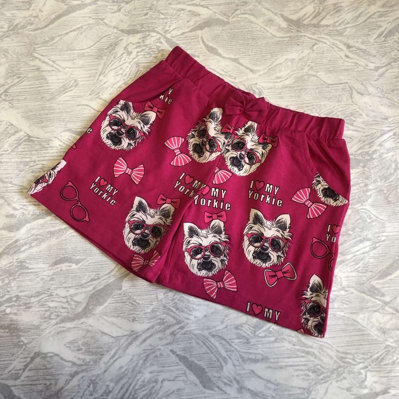 Шорты. С карманами, на поясе пришит бант. Спереди рисунок накат, сзади однотонные. 95% хлопок, 5% полиэстер. Турция. Размер: 📌 104 см: пояс 23-38 см, довжина 23 см, крок 6 см. 📌 110 см: пояс 23-39 см, довжина 24 см, крок 7 см. 📌 122 см: пояс 26-43 см, длина 27 см, шаг 9 см