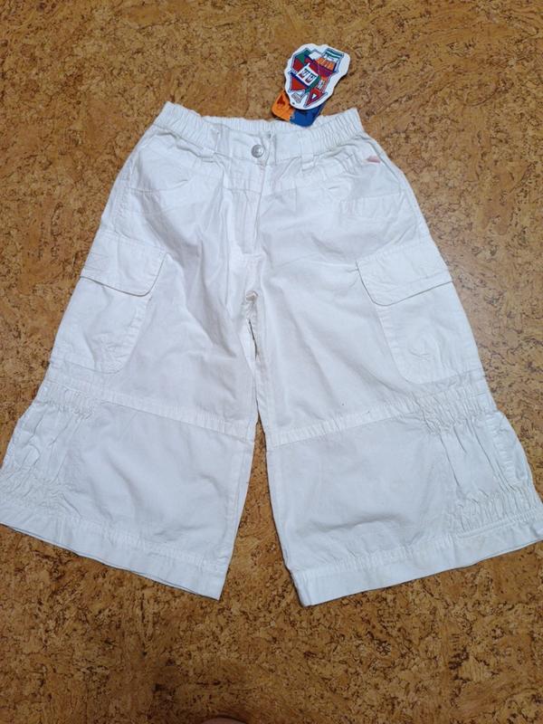 колiр бiлий,на 3-4роки,котон, клёш замiри: талiя 30, довжина 53, бедра41,посадка перед 20,посадка зад 25, ширина штанини низ 27, тканина суперова, новi Але потребуют прання плям нема