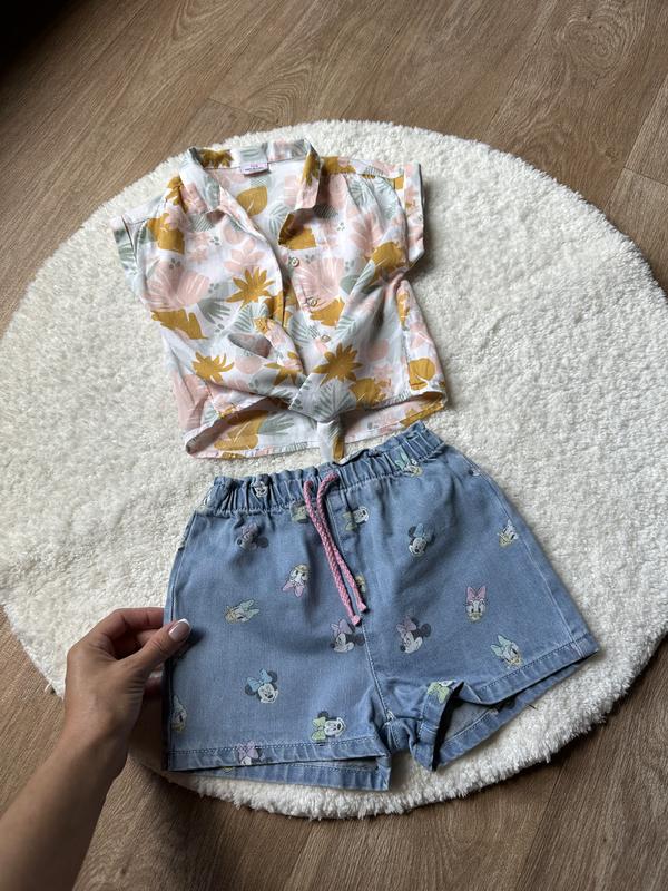 Трендовые вещи На 3-4 года замеры на фото состояние идеально ▪️топ-рубашка 100 грн ▪️шорты ❌ проданы 🔺вместе 150 грн🔺