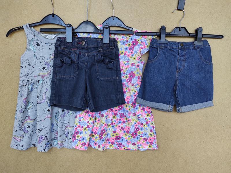 Две пары, цена указана за одни. Состояние близко к новому, в идеале. Платья в продаже - по 100грн шорты Next, указан размер 12 мес, но большемерят - по замерам одинаковые со вторыми. Замеры: длина сбоку- 27 см, ПОТ (есть резинки утяжки)- свободный вид 21/ максимально - 28 , ПОБ по центру бедра - 29 Rebel (Англия). Замеры: длина сбоку- 27 см, ПОТ (есть резинка в поясе)- свободный вид 22/ максимально - 30 , ПОБ по центру бедра - 30