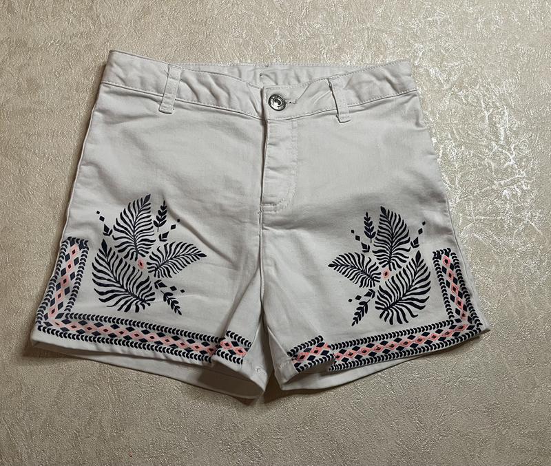 Шорты на девочку 10/11 лет в отличном состоянии (частично потертый рисунок. Фото снадам) Замеры: ПОТ - 31см(есть утяжка) ПОБ - 36см длина - 28см