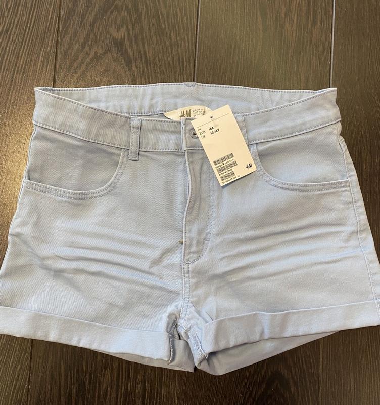 Новые шорты для девочки светлого голубого цвета, H&M, на 164 рост, ориентировочно на 12-13 лет