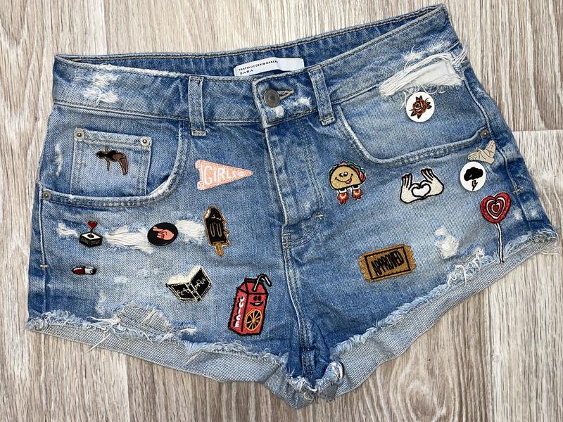 Шортики с нашивками и заклёпками Карманы спереди и сзади Состояние отличнейшее 🏷️Zara Размер 34. Смотрите замеры Длина 23(пах 25). ПОТ 36
