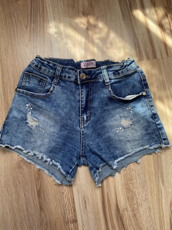 джинсовые шорты на девочку, имеют утяжку. На возраст около 11-12р.