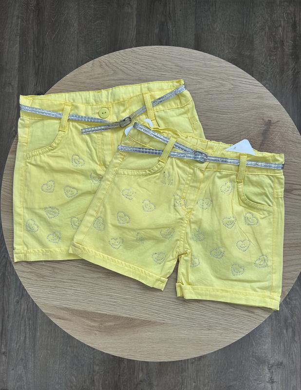Коттоновые легкие шорты короткие, украшены стразами.В поясе есть утяжка. Распродажа последних размеров 💫4-5 лет (ПОТ 28 см) 💫5-6 лет (ПОТ 30см)