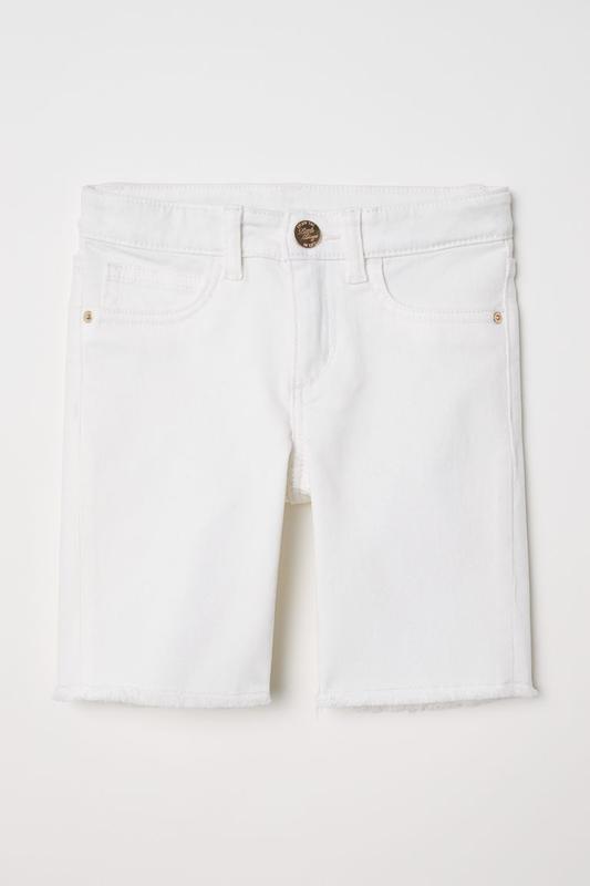 Удлиненные шорты с пятью карманами из эластичного денима. Регулируемая резинка на талии, а также застежка на молнию и пуговицу. Низ штанин необработан, в виде бахромы. Можно носить с подворотами. Очень стильные и модные. В наличии размеры 116, 122 см. Замеры на 5-6 лет 116 см: длина - 33 см шаг - 16,5 см талия - 27,5 см бедра - 31 см ширина штанины внизу - 13,5 см глубина посадки спереди - 17,5 см, сзади - 26 см Замеры на 6-7 лет 122 см: длина - 34 см шаг - 18,5 см талия - 28,5 см бедра - 32,5 см ширина штанины внизу - 14,5 см глубина посадки спереди - 17,5 см, сзади - 27,5 см Состав: 98% хлопок, 2% эластан