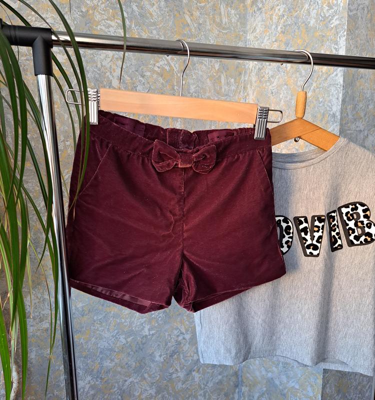 🤩Велюровые шортики от H&M🤩 Состав 100% полиэстер Ткань с красивым блеском Размер 6 - 7 лет ( 122 см ) Стан - идеальный 💎 Цена 149 грн 💣 Замеры: Длина изделия 29.5 см Талия 28 см (есть утяжка) Стегна 34.5 см