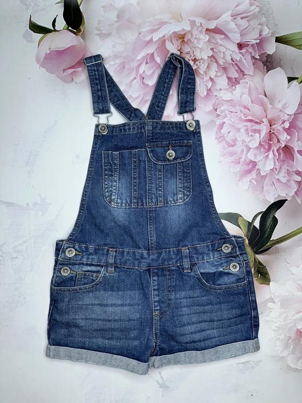 Джинсовый комбинезон Шлейки регулируются Спереди и сзади карманы Состояние идеальное без дефектов 🏷Denim Co 9-10 лет/140 р. Длина 60+-. Длина шорт 22. ПОТ 35