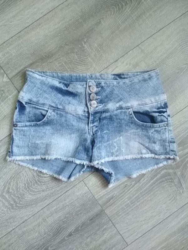 Джинсовые шорты размер 11-12 лет (152 см) длина 19,5 см, пояс 32 см, поб 38 см, посадка спереди 16 см