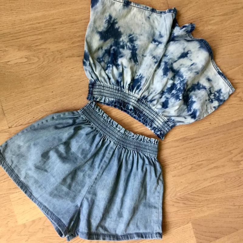 Джинсовая юбка-шорты Next Практичное комфортное сочетание юбки и шорт. На широкой эластичной резинке. 100% хлопок, джинс средней плотности: - одни из классического джинса - друзья с принтом тай-дай Размер указан 10 лет/140 см Замеры: (разом с резинкой) пояс 29,5 см, тянется до 37 см/ посадка спереди 31,5 см, сзади 35см /длина по боковому шву 32 см. Голубые: пояс 28,5 см, тянется до 37см/ посадка спереди 33 см, сзади 36 см /длина по боковому шву 32 см. Без особых нюансов, у голубых есть пара некритических маленьких зацепок. Цена за единицу. Продаю много различной одежды и обуви Next до 10 лет после ночек-близят, смотрите Мои объявления или запросите, буду предлагать.