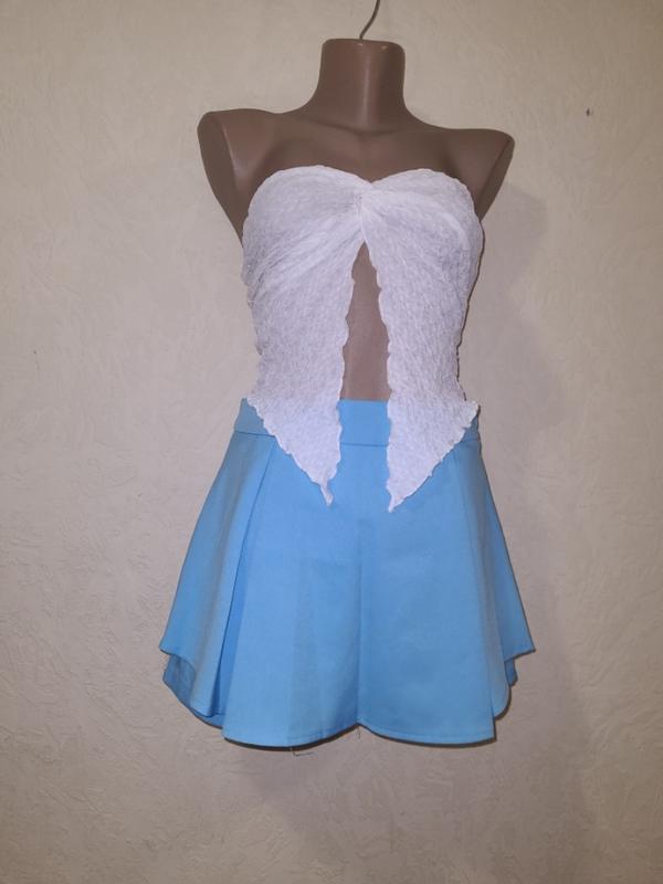 Мини шорты-юбка тенниска голубая