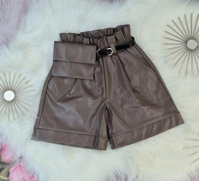 стильные шорты ткань экокожа очень классные сумочка и ремень в комплекте 158-1шт
