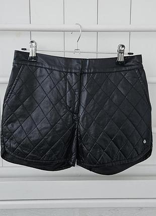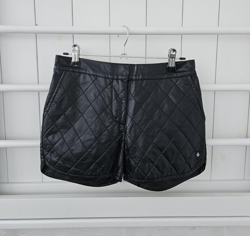 Шорты Supertrash из экокожи, размер 152. Есть подкладка. Сзади на резинке, резинки для утяжки нет. Длина спереди- 27 см, сзади-30 см, пояс- 32 см, бедра- 40,5 см.