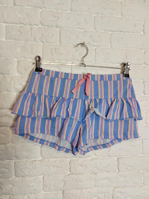 Состояние идеальное 100% хлопок Ширина по линии пояса в спокойном состоянии 28 см, пояс-резинка тянется Ширина бедер 44 см Длинна по боковому шву 22 см