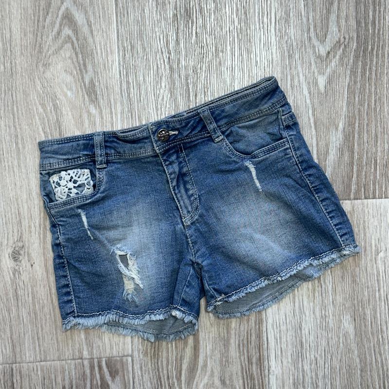Стильные джинсовые шорты с карманами из гипюра и потертостями - отличный выбор для вашей маленькой модницы, которая ценит комбинацию стиля и удобства. Эти шорты обеспечивают не только модный вид благодаря потертостям, но и добавляют женственности с помощью гипюра. Их удобный крой и качественные материалы обеспечивают комфорт при носке в течение всего дня. 🏷OVS 6-7 лет Длина 23. ПОТ 30 - утяжка