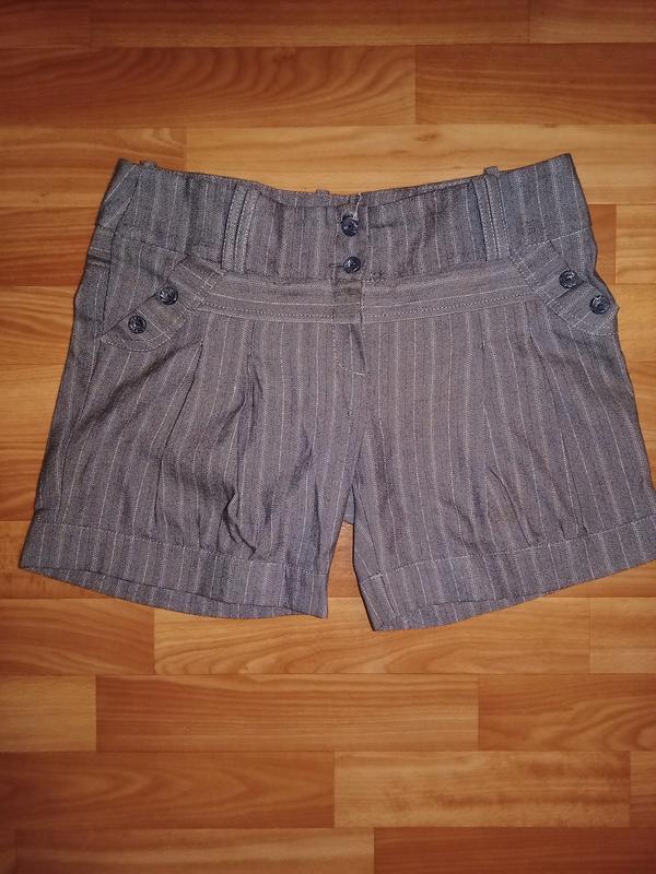 Шорты из костюмной ткани, серого цвета в полоску, в красивом состоянии. Размер М. Замеры при необходимости снаряжения.