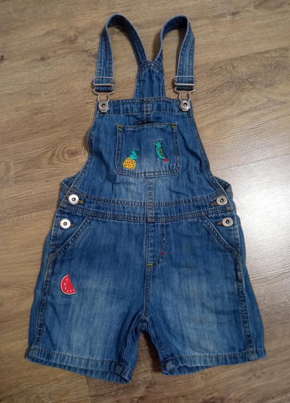 джинсовий ромпер на дівчинку в хорошому стані на бретельках можна фіксувати довжину з недоліків невеликі дві плямки зовсім непомітні на лівій стороні штанини. розмір розмір 98 -110 на 3-5,років. Довжина -60см.з брителяии.