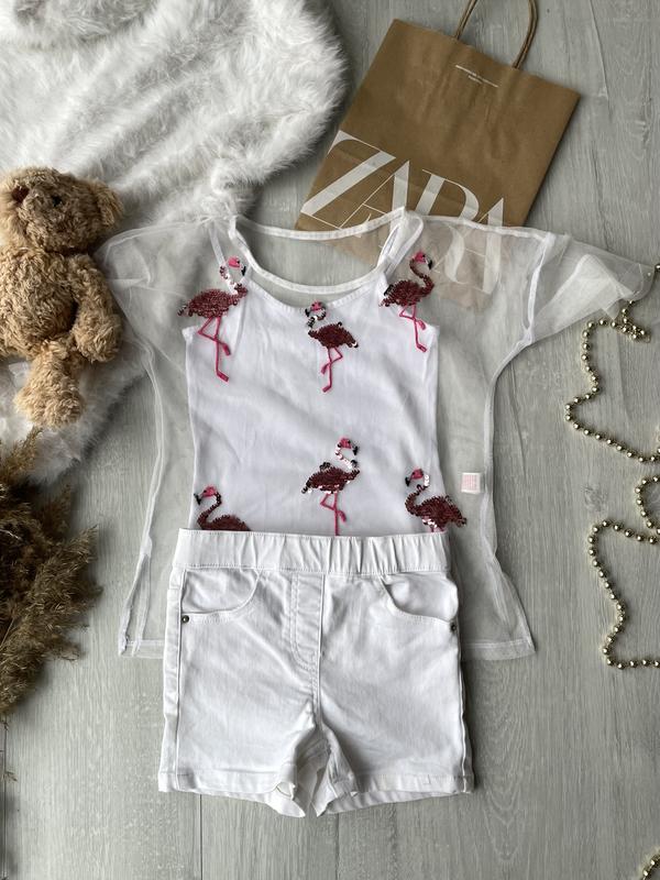 Комплект сборный Моднява футболка майка: Состояние - как новый без докорректов Возраст: 7-8роков Размер: 122-128см Бренд: F&F Длина майки-44 Шортики белые: Состояние - как новый без докорректов Возраст: 7 лет Размер: 122см Длина - 25 Талия-28