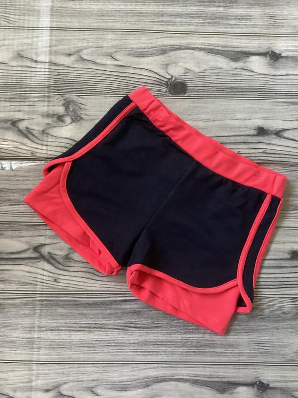 Шорты хлопковые для девочки синего цвета с коралловой отделкой.Модель оригинальная,необычная.Иммитация велосипедок,а сверху шорты.Доступны в размерах 140 146 152 158
