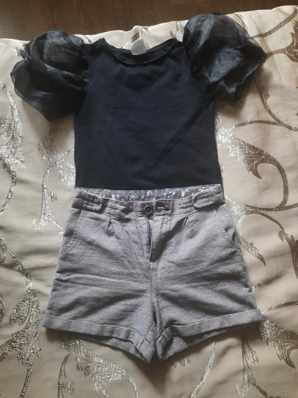 Очень стильные шорты H&M для школьницы на весну👌 ткань с золотой нитью, слегка придающая блеск. Футболка Zara тоже пока еще доступная к продаже - смотрите другие объявления 😉