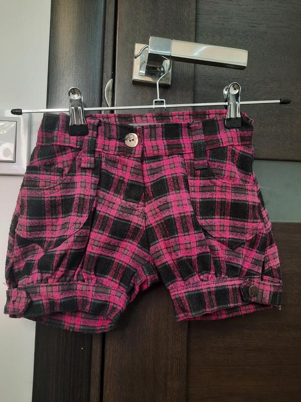 детские шортики для девочки. примерно для 3-4 лет 104см роста. на правой штанике нет пуговичка. также вставлена резинка, которой можно регулировать в поясе.