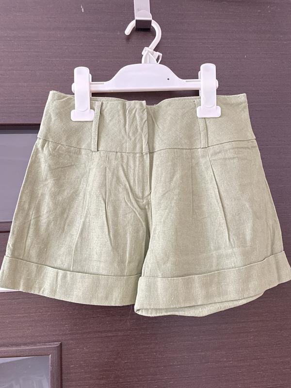 Красивые, удобные, мягкие хлопковые шорты BCX girl. Идеально но выход. Застежка - молния, под пояс - широкая лента завязывается бантом. Цвет бледный болотный. Длина 30см, ПО талии 31см, ПО бедер 42см.