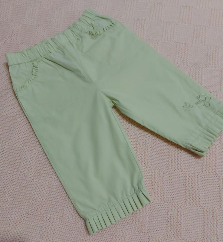 Салатовые штанишки для очаровательной девочки с карманами спереди и сзади, вышивка, 12 мес, 74 см Ширина пояса 23 см Ширина бедер 30 см Длина 38см (с поясом)