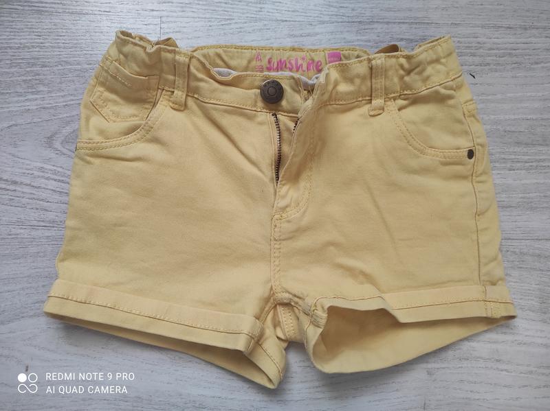 Шорти HEMA, розмір 146/152. Стан нових, без дефектів. Склад: 100 % коттон, добре тягнуться. Заміри: ПОТ 30 см- є утяжка, ПОБ 36 см, довжина 24 см. Колір яскравий жовтий, фото не передає. Перешлю по Україні Укрпоштою та Новою Поштою, Без повернення