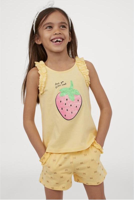 Шорты от бренда H&M. На возраст 4-6 р. Рост 110-116. Купились новыми. Безложений. 100% котон . Тонкие. Желтые с золотыми бабочками.