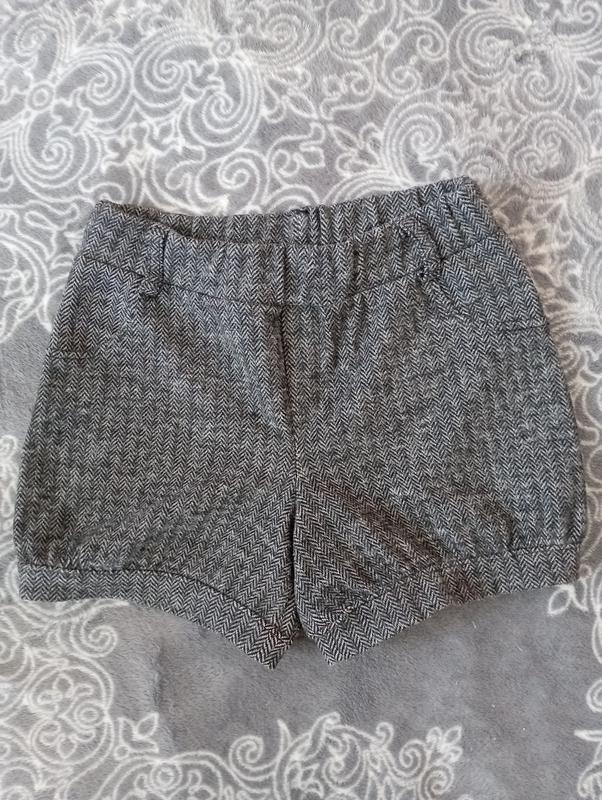 Теплые шортики,в идеальном состоянии, принт елочка.Размер указан 104 3-4р,но лучше подойдет на 4-5р.По фасона подходят на среднюю и полную ребенка, на худи смотрят не очень.