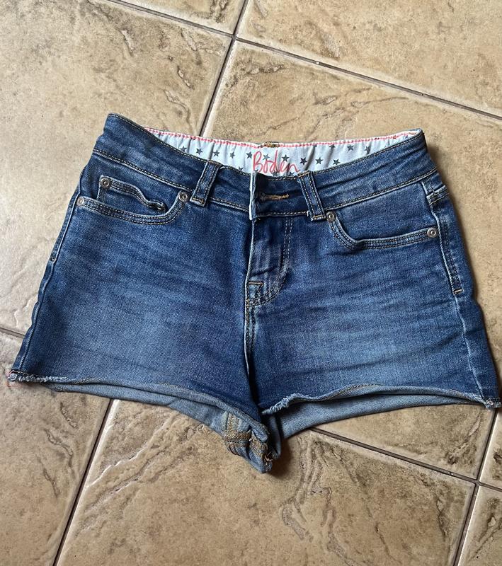 Джинсовые шортики на девочку.Состояние хорошее .Полу обхват талии 29 см ,бёдер 36 см ,длина по боковому шву 24,5 см