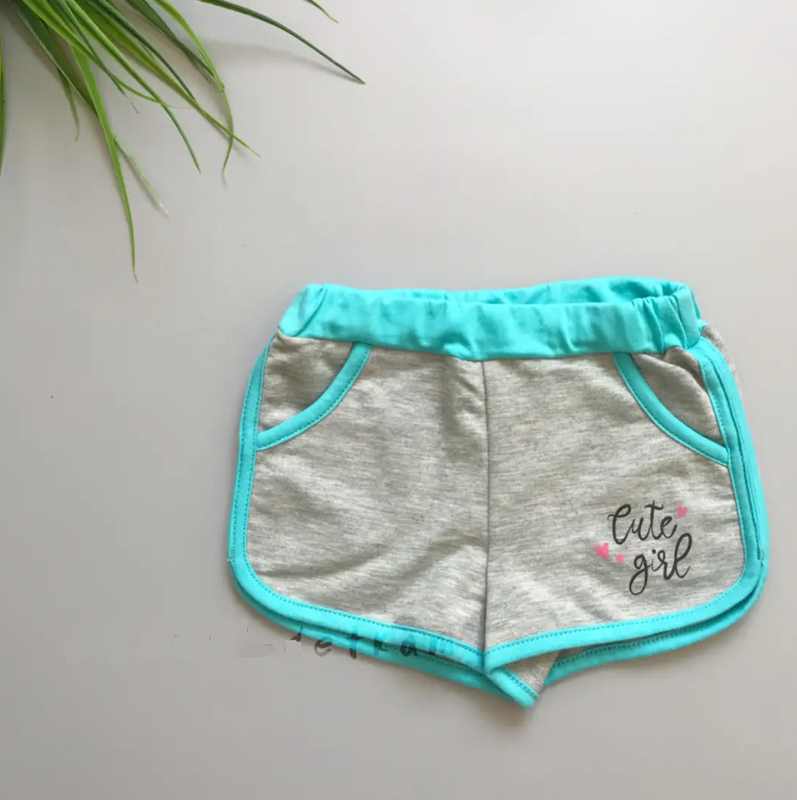 Детские шорты для девочки трикотажные ТМ Бемби. По переду врезные карманы. Отделка - контрастная окантовка. Материал - меланж двунитка, 40% хлопок. Размеры от 92 до 110.