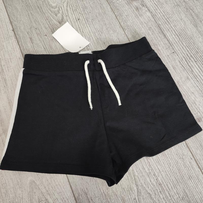 Трикотажные шорты с лампасами C&A 140 см 80% хлопок, 20% полиэстер Замеры: длина 24,5, пот 31 (шнурок декор), поб 38