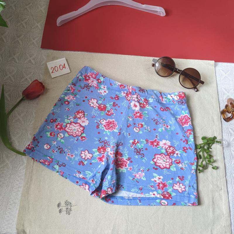 Шортики голубые розовые цветы пояс 29 39 в бедрах можно потянуть до 51 боковой шов около 25 см В поясе нужно отрегулировать и при этом легко зафиксировать ниточкой