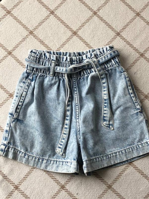 Шорти джинсові блакитного (варений джинс) кольору. Довжина 31 см. На талії резинка та пасок. Напівобхват талії при не розтянутій резинці - 26 см. Підійдуть на вік від 8 до 10 років.
