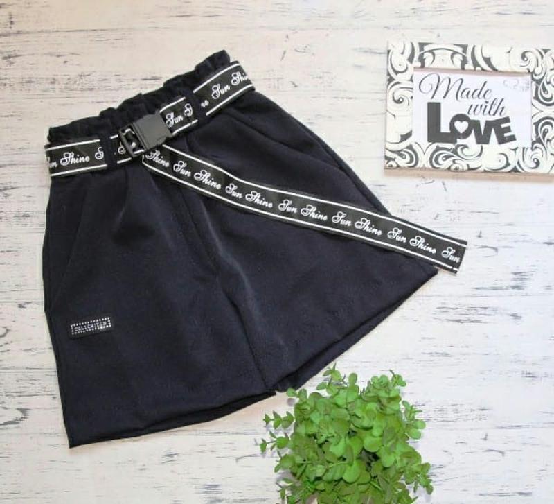 Шорти з поясом, тканина мадонна. В поясі резинка, є кишені ( пояс може відрізнятись) Колір темно-синий Розміри: 146р - довжина 35, шаг 8, пояс 27 158р - довжина 37, шаг 10, пояс 28