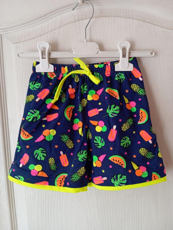 Яскраві шорти на дівчаток 7-10р, мають глибокі карманчики, подвійний низ.