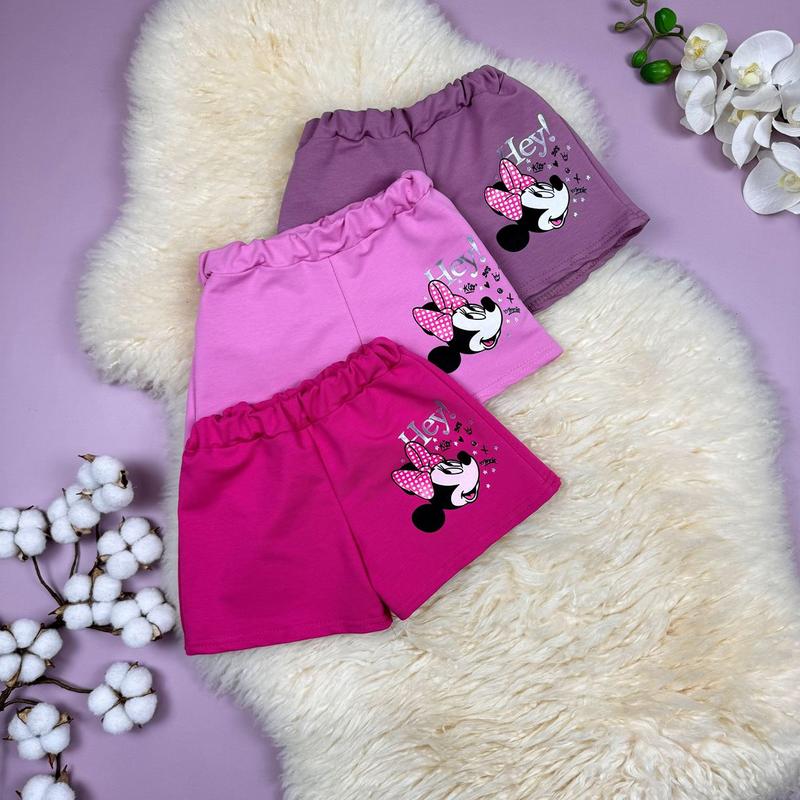 💕Шорти Мінні. Тканина друнитка. Малюнок - накат. В поясі резиночка. 📐Заміри: (86-92) - довж 21 (92-98) - довж 22 (98-104) - довж 23