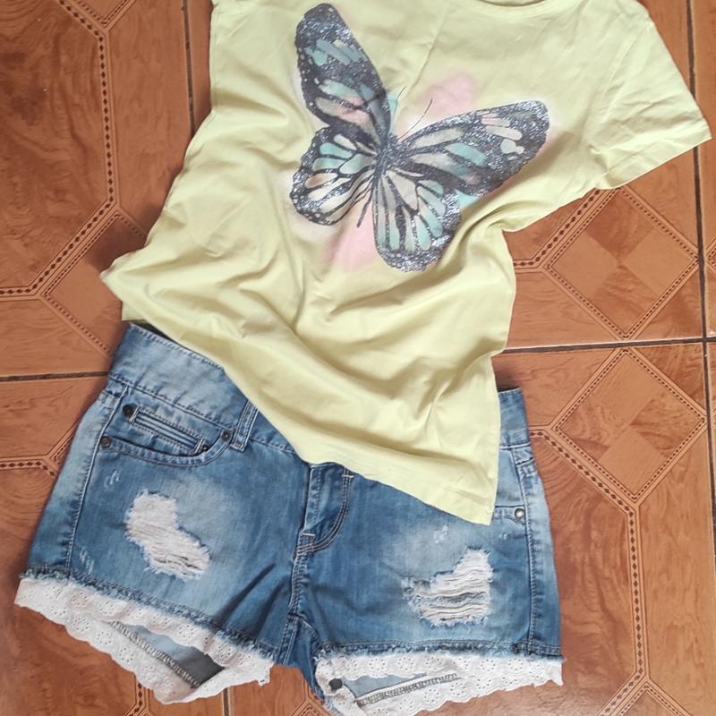 Шорты джинсовые, длина 26 см, ПОТ 39 см, ПОБ 37 см к ним можно футболку длина 57 см, ПОГ 40 см (70)