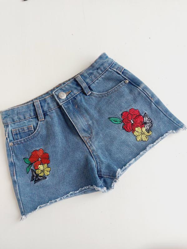 Шорты с вышивкой на 6-8 лет джинсовые с высокой посадкой шортики