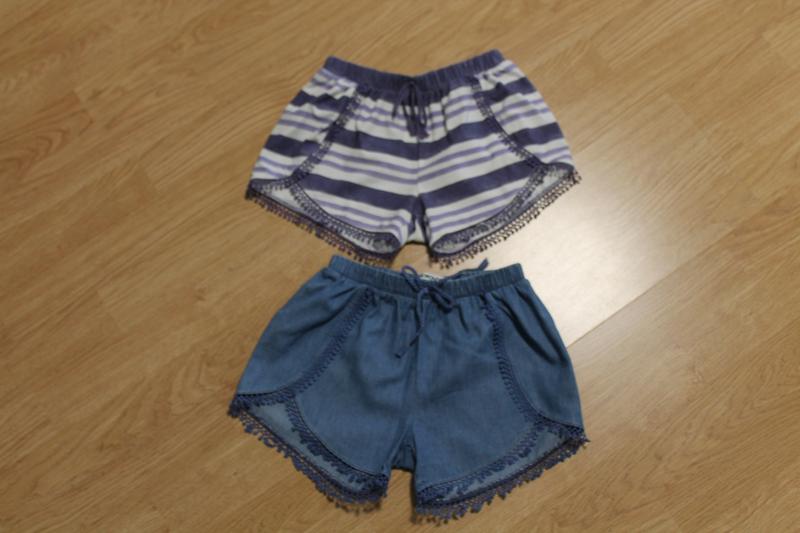 Дуже гарні шортики на літо для дівчинки) Стан ідеальний, жодних недоліків немає.Вказано 6 рочків на бірочці, але на худеньку дівчинку - будуть значно довше. Заміри з метром є на фото. Якість дуже гарна! 140 грн. - за 2 пари.